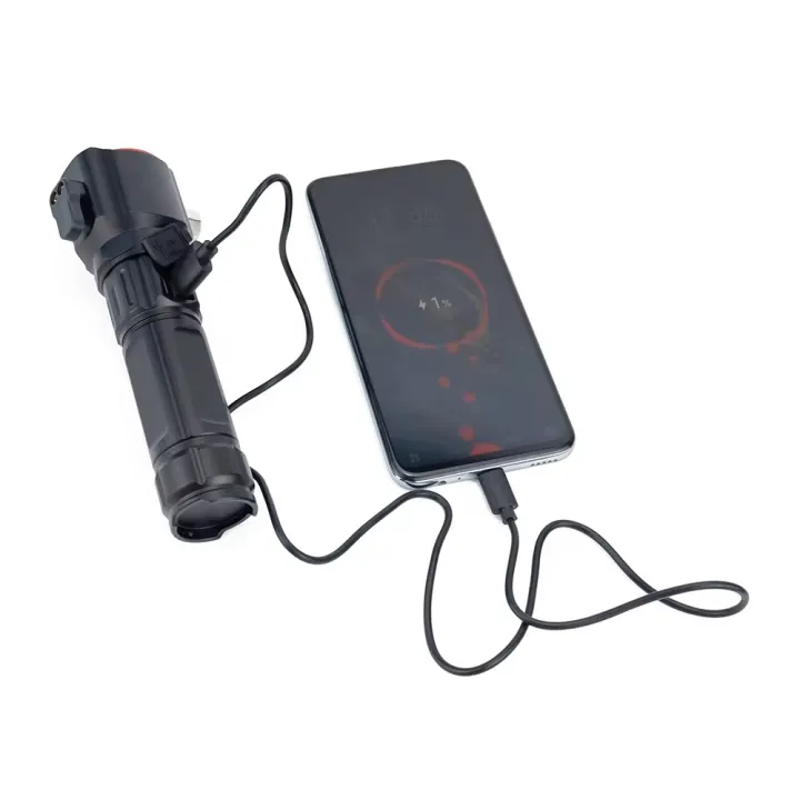 Be prepared for any situation with this Multifunctional Rechargeable LED Flashlight. Designed with a bright long-range beam, USB charging port, telescopic zoom, and emergency safety hammer — it’s perfect for outdoor adventures, car emergencies, and home use. Compact, durable, and built to last!